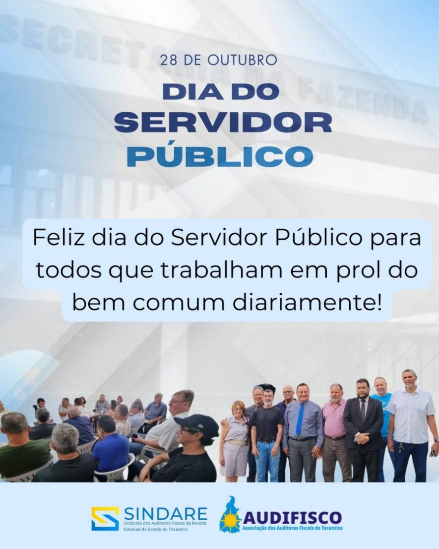 Neste dia, o SINDARE e a AUDIFISCO reafirmam seu orgulho em representar uma categoria comprometida com o Tocantins e com o futuro do serviço público. Que a data seja também um momento de valorização, reflexão e reconhecimento do papel essencial que cada servidor exerce na construção de um Estado mais justo, eficiente e humano.